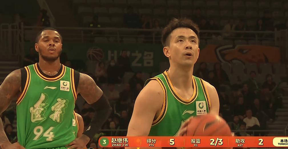 第二节比赛风云突变,鄢手骐一开始就命中三分球延续上节火热手感,随后赵继伟也用一记漂亮的打板三分球拿下本赛季首分。他的突破和精准的小抛投掀起球队一波8-0的攻击潮,迅速将分差拉开到两位数,彻底改变了比赛态势。球队凭借赵继伟的积极影响,整体比赛气质焕然一新,与此前大相径庭。